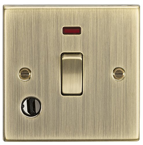 Knightsbridge 20A 1G DP Switch with Neon & Flex Outlet - Square Edge Antique Brass